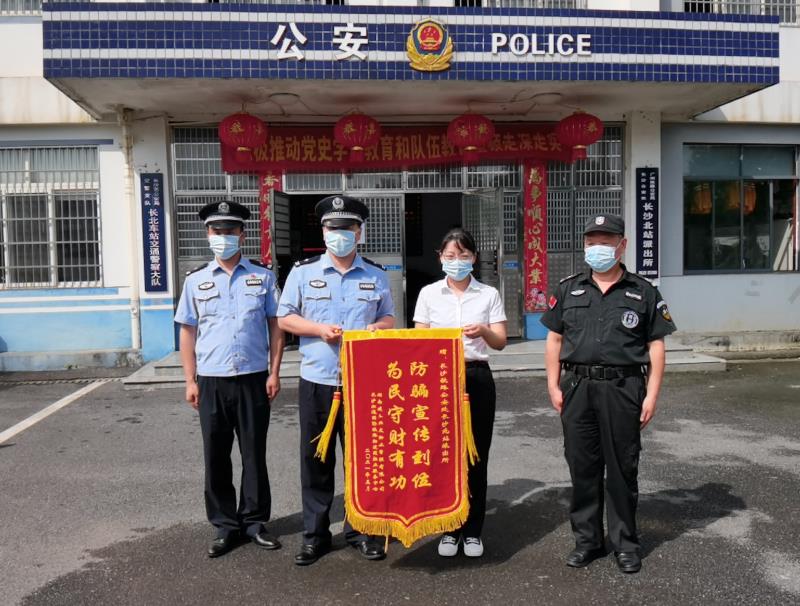 6月7日一大早,长沙湘通国际物流园物业中心田经理就带着一面写有“防骗宣传到位,为民守财有功”的锦旗走近长沙铁路公安处长沙北站派出所,田经理向副所长余强、综合队长焦磊反馈道,“上次你们宣传后,员工都很认真学习,现在接到所有可疑来电和短信,全按照你们说的坚决不理睬、不轻信、不转账。”