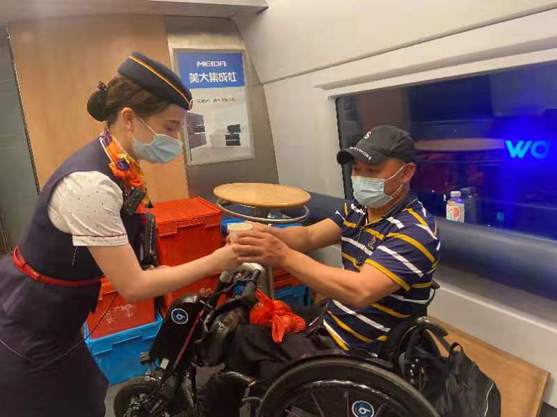 一路上车班对吴先生尽心照顾,送去热茶水,并自费赠送了盒饭,并告诉他在车上有任何需求都随时可以联系列车工作人员。