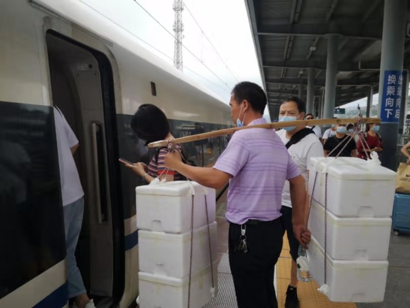 据了解,这名男子姓杨,夫妇俩,是怀化洪江市黔城镇人。当天乘高铁去长沙看望儿子,并带去几箱“东魁”杨梅,给儿子的同事尝尝家乡的特产。