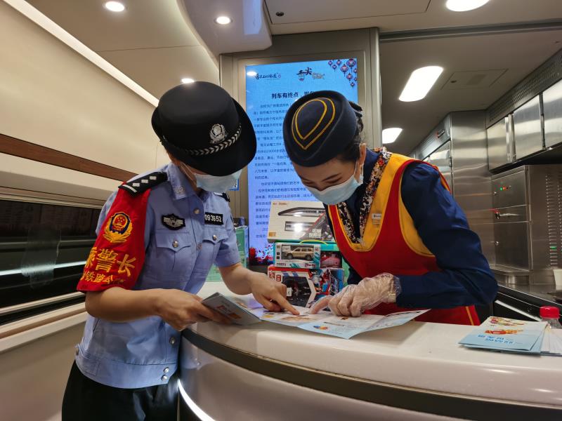 6月26日是国际禁毒日。当日上午,长沙铁路公安处乘警支队高铁女子分队的警花登上长沙南开往北京西的G84次列车,走进车厢,与旅客朋友开展“健康人生、绿色无毒”的禁毒主题宣传。