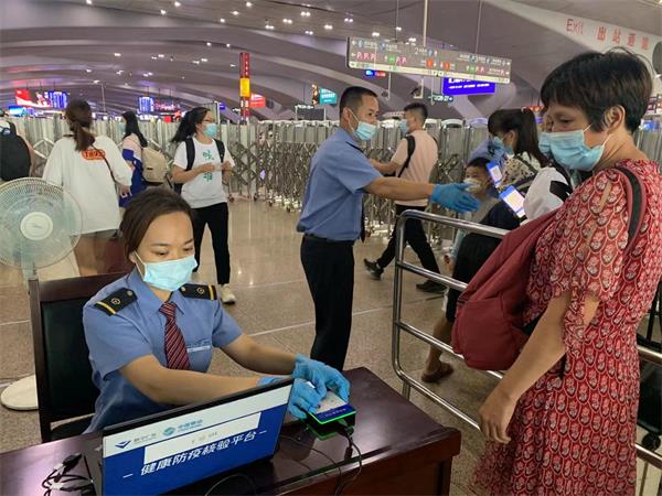 为提高旅客进站核验效率,避免人员聚集,广州南、深圳、深圳北、佛山、汕尾、珠海、中山站等车站安装了5G健康防疫核验系统。旅客只需刷身份证,系统即快速显示健康码、核酸检测结果、疫苗接种信息。此外,广州、广州南、广州东、广州北、庆盛、新塘南、株洲西、珠海、明珠、横琴等车站设置了核酸检测点,为旅客提供核酸采样服务。