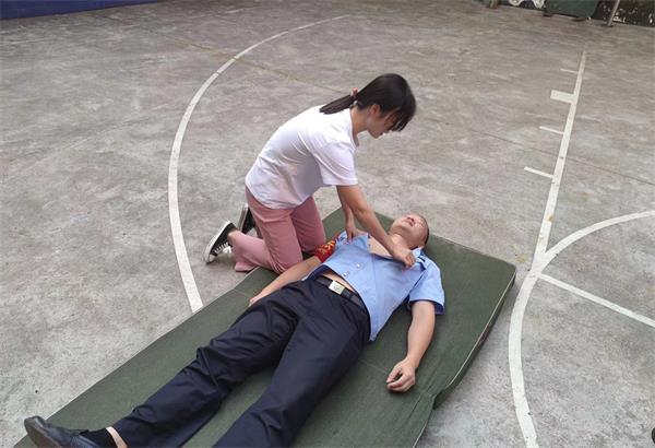 教学过程中,警嫂护士向奕向全体干部民警讲解了整个心肺复术操作的具体步骤和要领,包括急救前的检查工作、急救中的注意事项、急救的动作要领以及急救实施过程中的细节等流程,细致示范如何正确进行心肺复苏。