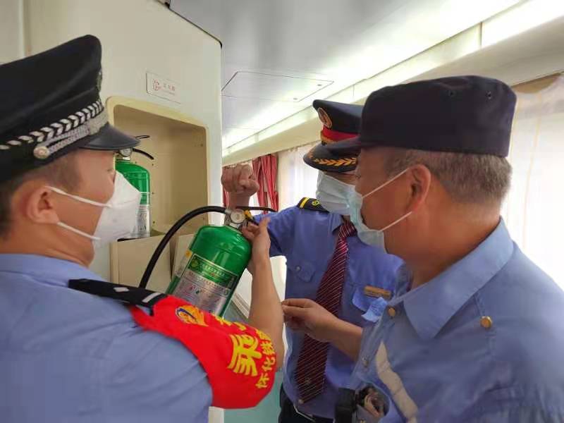 同时,列车乘警联合列车长,还对旅客列车消防器材、两炉一灶等电器设备严格把关,落实防火、防爆、防破坏、防投毒措施,确保列车的安全稳定。通过应急演练和消防大检查,有效提升了乘警及列车工作人员处置突发事件的能力,同时也排除了系列安全隐患,为旅客安全出行打下了坚实基础。
