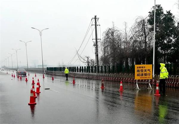 三、及时沟联信息,强化安全防范。一是大队及时与市政府应急办、市长热线办、市桥梁办等部门取得联系,建立情况通报和协调机制。二是大队各路面执勤中队通过电子显示屏、车载喊话等设备对过往车辆进行安全提示和引导,并对驾驶人就低温雨雪天气驾车相关知识进行宣传教育,确保驾驶人能够在恶劣天气下小心、安全、低速行驶,提高雨雪天气行车避险能力。三大队提前通过官方微博自媒体发布天气预警、安全提示和路况等信息,提醒市民群众安全出行。