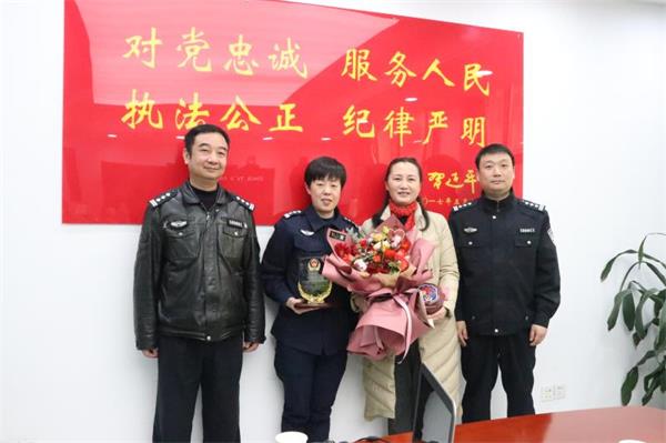 欢送仪式行将尾声,胡满娇同志发表了退休感言,话到真情处几度哽咽。她回顾自己的从警生涯,饱含深情,流露出对人民交通警察这一职业的高度认同和无比热爱,也提出了对青年民警的热切期望,更是表达了对大家的感激之情。在阵阵掌声中,局领导、大队领导将纪念奖章、鲜花送到胡满娇同志的手中,这场令人难忘的退休欢送会落下帷幕,大家一起留下了令人难忘的记忆,将感动与快乐定格在这美好的瞬间。
