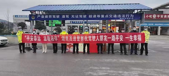 春节临近,为全力营造辖区安全畅通的交通环境,在2月5日中国南方小年这天,湖南省高警局娄底支队涟源大队在白马服务区开展了“平安春运、温暖湘伴”交通安全宣传活动,为过往司乘人员提供热水、方便面、行车指南等便民服务,让他们感受回家般的温暖。.