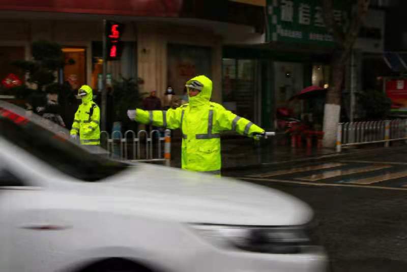 对讲机声、口哨声、喇叭声、汽车声伴着细雨,在春运时节,为归家人奏响了道路安全畅通的乐曲。