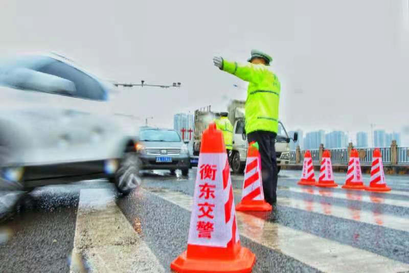 2月8日,受市民集中采购年货及走亲访友增多等因素影响,衡东县城区道路交通压力持续增大,衡东县公安局交警大队全警动员,合理部署警力开展疏导保畅工作。“新大桥南往北车流量较大,请执勤人员注意合理导流””不要随意停放,即停即走””后面的车快点跟上,不要随意穿插”,在小雨中,各执勤点交警胸前对讲机中声音此起彼伏,在122指挥中心的统一调度下,大家冒雨紧密配合,并通过手上的大喇叭喊话提醒车辆即停即走,小口哨也不停的随着手势有节奏的吹响,指挥车辆快速通行,保障路面车流有序畅通。