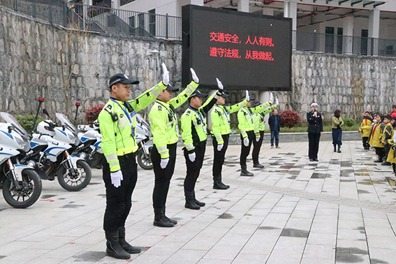 接着,六名骑警在操场上,手把手地教学生们交通指挥手势,让学生们亲身体验到遵守交通法规的重要性,提高自我交通安全意识。同时,还发放了交通安全知识手册,让学生们带回家中与家长共同学习交通安全知识,争做文明行路人、文明乘车人、文明驾驶人。