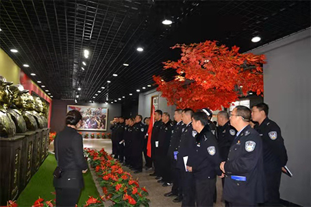 民警们先来到湘鄂川黔革命烈士纪念碑,为纪念在湘鄂川黔革命根据地创立和建设时牺牲的红二、六军团战士2万多名,1981年11月,修建了红二、六军团革命烈士纪念碑,碑高18米,为青石建成,四方碑上有萧克、廖汉生的题词。在革命烈士纪念碑前,为革命烈士敬献花篮,重温入党誓词,鞠躬致敬,绕纪念碑环顾一周,以示哀悼。然后,在红色讲堂,支部书记孟庆渊为大家上党课,为6位优秀党员颁发证书。