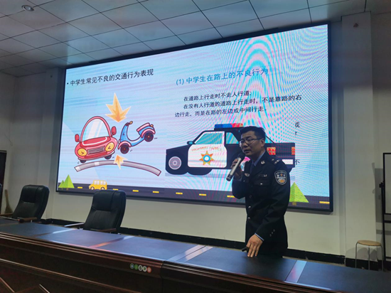 这是临湘市公安局交警大队民警在临湘六中多媒体教室开展第26个全国交通安全教育日主题活动中的一幕。为了确保全市中小学生上下学途中的交通安全,临湘公安交警高度重视,把交通安全宣传进校园作为预防交通事故的有力抓手,严格要求各辖区中队依时间节点开展主题宣传活动。