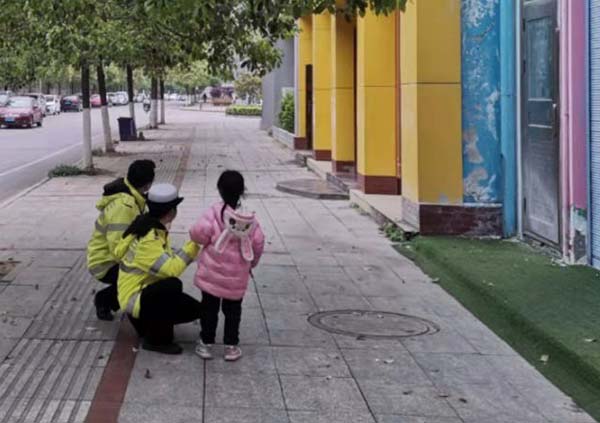 随后,在物业公司工作人员的协助下,民警将女童安全护送回家。