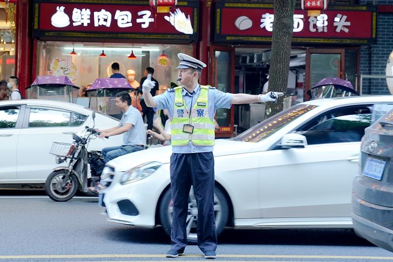 上午7时,大队开启“高考护航模式”,执勤警力提前到岗到位,在考点外一切准备就绪迎接考生到来。民警在现场摆放禁鸣、交通管制标志标牌,设置警戒线,清理考场周边乱停乱放的车辆。并对道路车辆进行疏导管控,在考点周边开展流动巡逻,除考点工作人员和接送考生专用车辆外,禁止其他社会车辆进入管制路段通行。同时,开辟高考“绿色通道”,快速应急处突,如有考生出现紧急情况,将第一时间启动“爱心护考”警车,为考生及时解决困难。