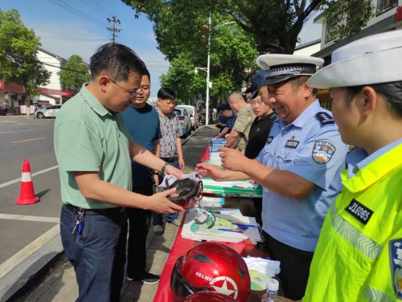 同时,宣传咨询活动现场,大队宣传民警还组织现场群众进行交通安全知识有奖问答,对表现优秀的群众,奖励安全头盔,参加活动的大队副大队长张文武亲手为获奖群众戴上,此举极大的提高了群众参与的热情和积极性,也进一步融洽了警民关系。