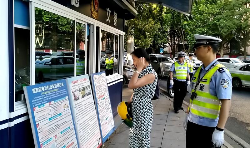 宣传先行,营造整治氛围。大队抓实交通安全“七进”宣传,组织民警辅警深入街道社区、企业、单位、学校等人流密集区,通过发放宣传资料等方式,提升市民群众对摩托车、电动自行车违法整治认识。大队结合安全生产月活动,集中派出警力进入辖区湖南文理学院等学校进一步提高学生和家长的交通安全意识,引导家长做好监护管理,督促学生互相监督,自觉抵制涉摩托车、电动自行车违法行为。同时,大队积极借助官方微博等新媒体和新闻媒体,推送安全出行知识,曝光“一盔一带”典型违法和事故案例,提高市民安全出行意识。