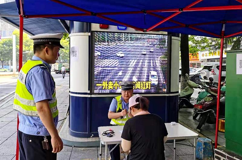 “美女,你好。你驾驶电动自行车未戴安全头盔,按照交警支队摩托车电动自行车集中整治方案要求,你要在现场集中观看不少于30分钟的警示教育片,关注常德交警微信公众号,进入违法教育学习、考试平台进行学习考试,考试合格后,我们再对你的违法做出处罚,你还必须购买头盔回来后方可放行车辆”