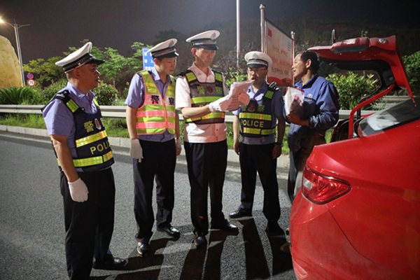督导结束后,肖湘鹏副支队长与支队铁骑巡逻大队教导员罗春芳还参与了衡阳县大队持续开展的“平安一号”夜查行动。在当晚的夜查行动中,衡阳县公安局交警大队各中队统一行动,在各自的辖区对超限超载、无证驾驶、酒后驾驶等严重违法行为进行查处。肖湘鹏副支队长一行在检查车辆、排查安全隐患的同时,还对电动车、摩托车驾驶人不戴安全头盔、无证驾驶四轮电动车等行为进行了教育劝导。当晚的夜查行动中,衡阳县公安局交警大队共查获酒驾4起,其他违法驾驶行为36起,有效净化了辖区道路交通环境,有力震慑了心存侥幸的违法驾驶人,确保了广大群众生命财产安全。