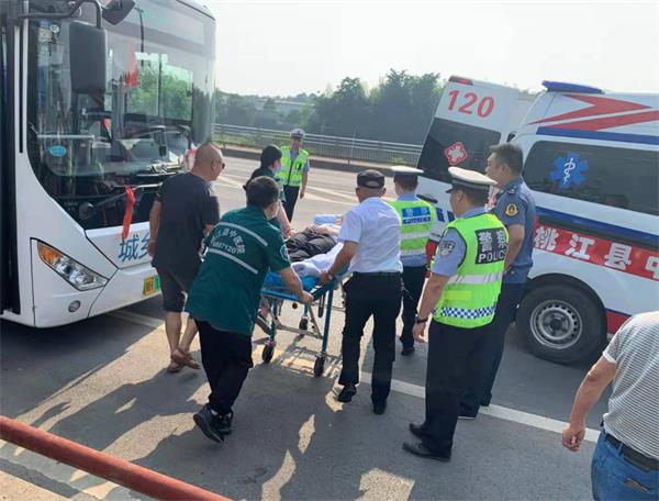 桃江县域某公路上,一台载有36名乘客的客车与一台客车相撞,车上多名乘客受伤被困,因车辆油箱被撞后出现泄漏,存在爆炸风险。接到报警后,交警部门迅速启动应急处置预案,协调交通运管、120急救、城乡客运公司等部门联合开展现场救援、事故勘察、调查和处置等工作,最终成功处置该起交通事故。这是6月23日上午,由桃江县公安局交通警察大队牵头组织开展的一场安全生产应急救援演练活动。