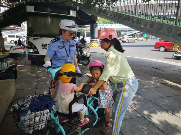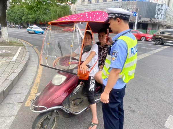 “二轮电动自行车只能搭乘一名12周岁以下至6周岁以上的未成年人。”6月27日,直属二大队民警在城区丹阳天桥整治点,发现一位女士骑一辆电动自行车搭乘了两个6岁以下的孩子,虽然都佩戴了安全头盔,但还是很危险。民警给予指评教育,指导她现场参与在线学习交通法规后,将孩子送上一辆的士车回家。自6月中旬以来,为建党100周年营造文明和谐,安全畅通的交通环境,常德公安交警部门根据“平安一号”交通安保工作要求,在市城区强力推进摩托车、电动车专项整治。辖区各公安交警大队全警上路,机关警力下沉一线,实行24小时勤务,取消双休日,采取夜查行动和白天整治的“白+黑”整治模式,发起对摩托车、电动车违法行为严厉攻势。一个星期以来,支队领导深入一线强化督导检查,层层压实工作责任,为民警辅警加油打气,确保整治取得实效。全体警力不畏高温酷暑天气,克服疲劳厌战情绪,严格执法,文明执法,对摩托车、电动车非法加装伞篷和不戴头盔等违法行为,发现一起,查处一起,不消除违法行为不放行。