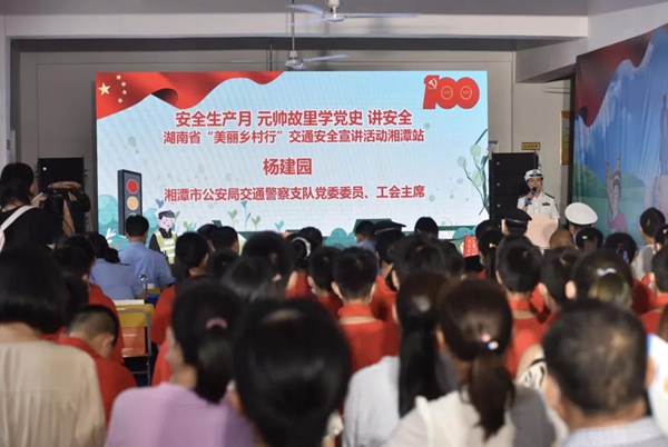 2021年6月25日下午,湖南省第五站“美丽乡村行”--“安全生产月 元帅故里学党史 讲安全”主题交通安全巡回宣传活动在湘潭县中路铺镇中心小学开展。现场人头攒动、座无虚席,学校师生与家长以及附近村民热情高涨踊跃抢答、互动氛围热烈,本次活动共计有200余人参加。