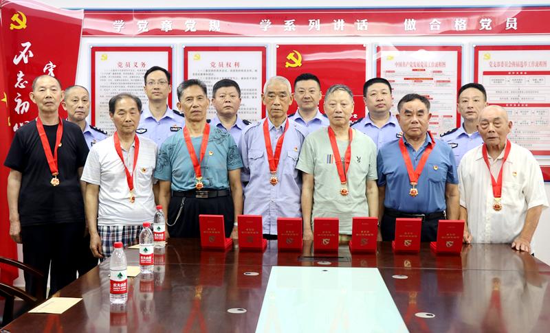 6月30日上午,常德公安交警直属一大队举行“光荣在党五十年”纪念章颁发仪式,大队党总支书记、大队长翦凝冰同志为7名党龄达到50年的退休老党员颁发“光荣在党五十年”纪念章。大队全体班子成员参加活动。