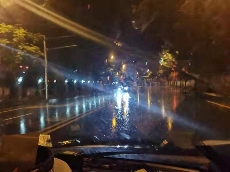 6月28日晚 10点左右,一场大雨倾盆而至,路面湿滑,大雨不停拍打着车窗,一、二中队交警闪烁的警灯在城区道路上穿行着,他们排查着每个易积水路段。