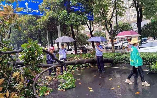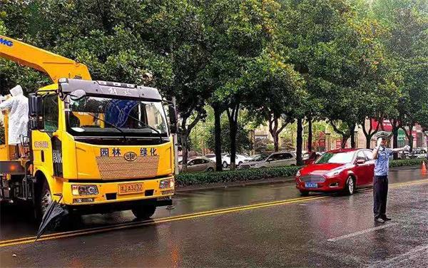 随后,市政园林绿化部门工作人员赶到现场处置,民警辅警在疏导交通的同时,协助园林绿化工作人员将大树作锯枝栽种处理。在一个多小时的时间里,民警辅警一直冒雨坚守在这里,维护着交通安全畅通,赢得了过往驾驶人称赞和市民群众好评。