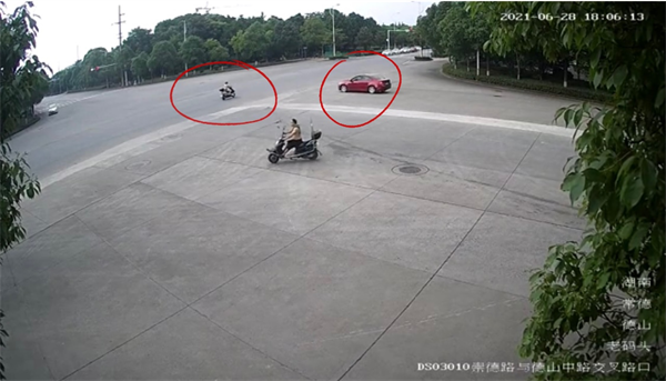 无独有偶, 6月28日18时06分许,蔡某驾驶电动自行车,沿常德市武陵区德山大道由北往南行驶至德山大道与崇德路交叉路口时,遇刘某驾驶轿车,沿常德市武陵区崇德路由西向东行驶至该路口,蔡某无视前方交通信号和周围道路其他正常行驶车辆,在通行道路的交通信号灯为红色时,依然旁若无人的行驶,致使双方车辆发生碰撞,双方车辆受损,蔡某全责。蔡某在驾驶电动车未正确佩戴安全头盔,头盔虽然在头上,却未扣上安全扣,碰撞发生时头盔直接掉落,未起到任何防护作用,头部多处挫伤。