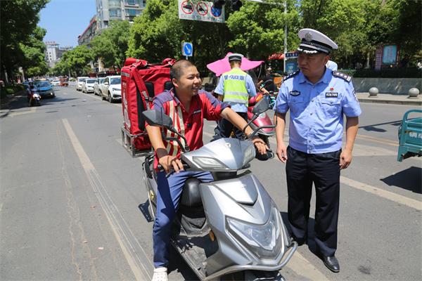 在督战现场,阳纯卫带头推行人性化执法。11:00左右,一辆加装遮阳伞的电动车被拦停,50多岁的驾驶人表示自己患尿毒症,刚从医院出来,身体虚弱经不起烈日烤晒。了解情况后,阳纯卫提醒该驾驶人回家后自行拆除,并吩咐执勤人员给予放行。
