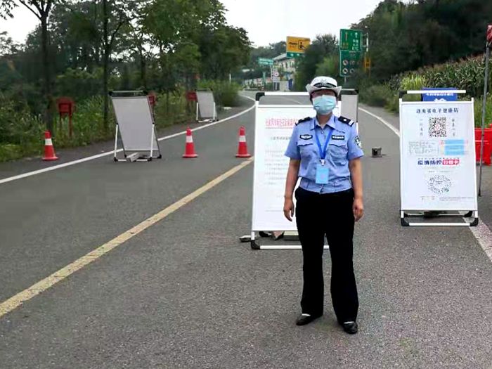 “您好,请您出示车辆通行证,并接受安全检查。”8月3日凌晨,在张家界市永定区邢大公路沅陵隧道防疫临时检查点,张家界市公安局交警支队直属一大队女民警田蕙菡拦停一辆过关车辆,礼貌提醒说。
