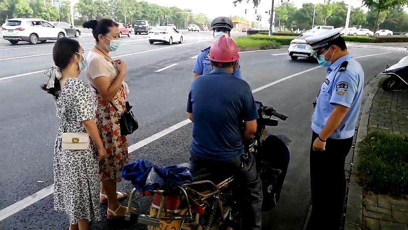 当天早上8时10分,在常德市城区柳叶大道与桃花源路口,常德公安交警直属一大队三中队警员在这里开展摩托车电动自行车专项整治行动。远远看到一辆摩托车载着3个人向着执勤点驶来,且只有驾驶人佩戴了安全头盔。执勤警员立即将其拦下。经询问得知,驾驶人名叫谭某,车上的三人是一家三口,一起到市区某地吃酒,为图方便挤上了一辆摩托车,而且家人均为佩戴安全头盔。民警现场对驾驶人超员和乘客未佩戴安全头盔的违法行为进行处罚后,又现场对一家三口进行了法制宣传教育,指出了超员及不戴安全头盔的危害。