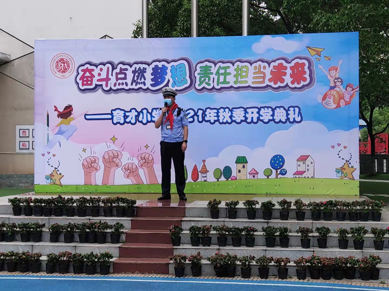 为切实加强广大中小学生交通安全宣传教育,进一步增强中小学生的交通安全意识和自我保护意识。9月8日,常德公安交警支队直属二大队利用新学期开学典礼的有利时机,结合“知危险,会避险”的宣传重点,组织民警走进辖区育才小学开展交通安全宣传,讲好“开学第一课”。