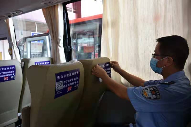 为深入推进“一盔一带”安全守护行动,提高客运车辆安全带使用率,提升乘客交通安全意识,减少道路交通事故伤亡,9月7日,衡山交警大队宣教中队民警走进衡汽集团衡山分公司、楚湘客运公司开展了粘贴“系好安全带”提示贴活动。