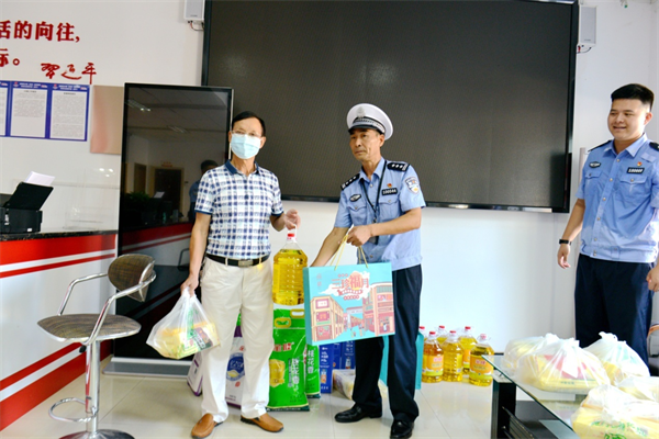 临别时,曾祥富和党员志愿者,提前祝福他们中秋节快乐,度过一个安定祥和,快乐的中秋佳节。群众对交警支队党员志愿走访慰问表示感谢。