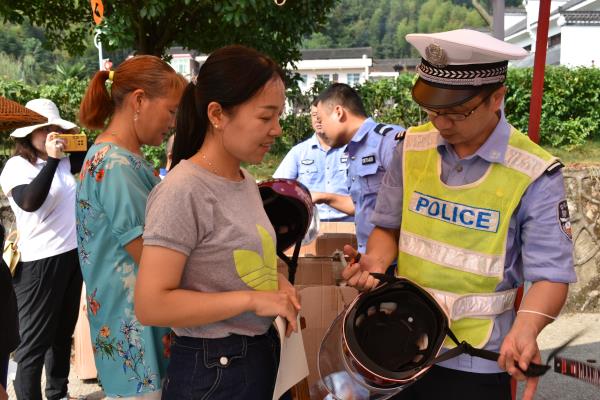 “这个活动很好,以前骑摩托车没戴头盔很不安全,今天收到了交警他们送的头盔,以后骑摩托车出行就安全多了。”新桥镇黄泥村村民高君庚手里拿着新头盔,高兴地向记者展示着。