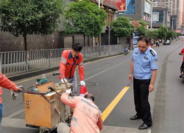强化道路安全隐患排查。大队基础设施股民警结合事先摸排的重点隐患,联合多部门进行“拉网式”排查,做到“早发现、早治理”。对巡逻中发现设施损坏、缺失,车辆、摊贩阻碍道路的,通报相关部门及时更换、修复,并视情采取清理、驱离等管控措施,防止因指示不明或道路隐患整改不力而引发的意外交通事故,将安全隐患消除在上路之前,事故隐患消除在“萌芽”之中。
