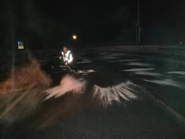 经过彻夜守护,凌晨低温时段过往车辆安全有序通行