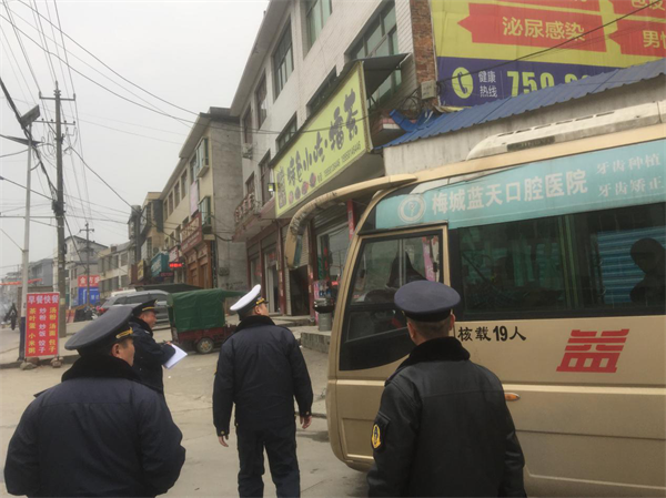 (图为仙溪执法中队加强客运车辆的检查工作)