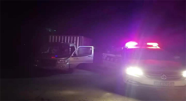 图:执法人员分别在城区、黄茅洲镇、南大膳镇非法砂石场非法砂场进行突击检查、巡航排查。