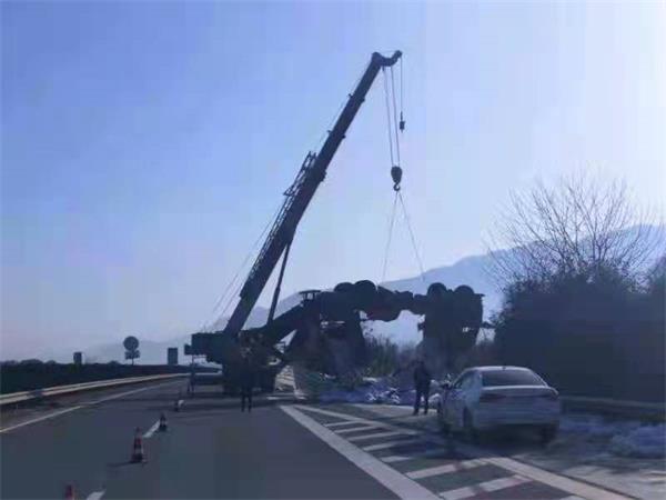 2021年1月13日凌晨十二点,长浏路产大队接到报警电话称,在杭长高速长浏段727KM+500M西往东方向发生一起大货车侧翻事故。接警后路管员立即赶往事故现场,抵达现场后发现一辆满载干粉丝的大货车侧翻在护栏上,车身变形严重,所幸该事故没有造成人员受伤,货物散落在路面上,现场一片狼藉,情况十分危险。