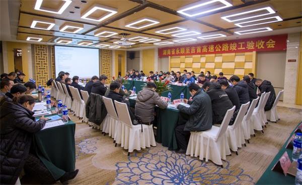 竣工验收会议由湖南省交通运输厅基建处副处长王世斌主持。涂征宇同志代表永吉项目公司作工程项目执行报告。湖南高速集团湘西分公司党委委员、副总经理彭斌代表管养接收单位作发言。专家组,省厅相关单位负责人,沿线地方指挥部机关领导,省高速公路集团、参建各方代表参加验收会。