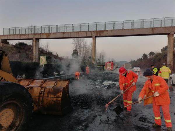 1月18日4时45分,湖南高速邵阳分公司洞口路产大队值班室接高速交警来电,在G60沪昆高速东往西方向K1327+600M处,一辆小货车发生侧翻起火......大队负责人黄晓波收到消息后,带领队员朱华、汪田迅速赶赴事故现场。
