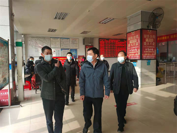春运动员仪式结束后,县领导在该司经理李华陪同下来到骏马亭车站长途发班区检查指导工作,在长途发班区车上检查设施设备是否套配齐全,疫情防控消毒等工作。