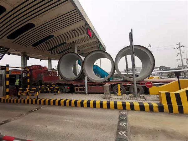 原来是入口车道驶入一台拖载圆管涵的车辆,因为超限,正在进行入口劝返。