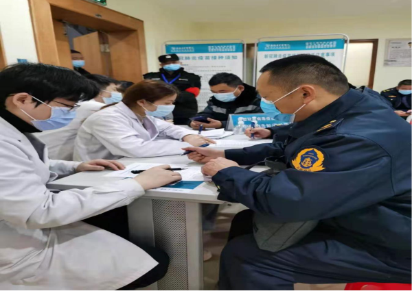 2月3日至4日,在岳阳市中医院急诊科新冠疫苗接种大厅,市交通运输综合行政执法支队交通执法一线人员在医护和支队工作人员的有序引导下,顺利完成了新冠疫苗接种工作。