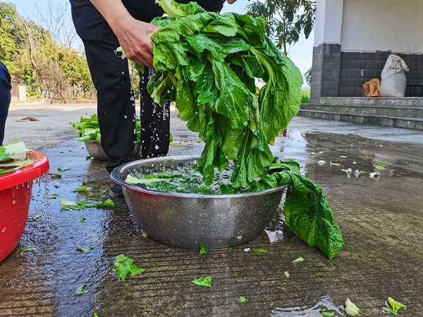 现在的官渡收费站庭前四季有花,院内四季时蔬,站区乐趣无穷、温馨如家。瞧那菜园子里的蔬菜涨势极好,绿油油的一大片真是可人。趁着这晴好的天气,大家把娃娃菜采摘出来,菜根菜叶分类处里,菜头削好炒着吃,菜叶洗了晒干做腌菜。