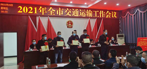 会上,党组成员、副局长张迎庆宣读了《沅江市交通运输局关于表彰2020年度交通运输工作先进单位和先进个人的决定》。会议现场对交通运输工作综合考评、安全生产、综合治理先进集体和年度先进个人、安全生产突出贡献奖以及“十大爱岗敬业标兵”“十大和谐家庭”“十大最美出租车司机”“十大最美公交车司机”进行了表彰,颁发了获奖证书。