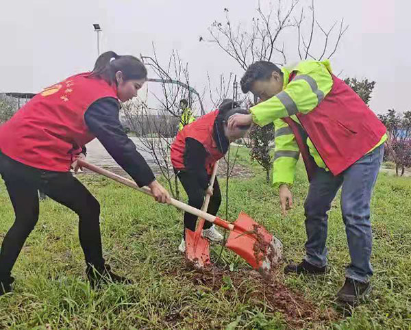 春雨绵绵润沃土,正是植树好时节。在全国第43个植树节来临之际,湖南高速长沙分公司乌山党支部、白箬铺党支部与望城交警大队贯彻深入落实“青山绿水就是金山银山”理念,积极履行生态绿化社会责任,联合开展植树造林活动。