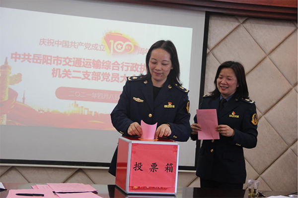 4月8日上午,岳阳市交通运输综合行政执法支队机关一支部和机关二支部换届选举党员大会在嘹亮的国歌声中开幕。机关全体正式党员参加会议,选举产生了新一届支部委员会委员,新一届支部召开了第一次支部委员会,选举产生了新一届支部委员会书记、副书记、组织委员、纪检委员、宣传委员,圆满完成支队机关支部换届选举工作。