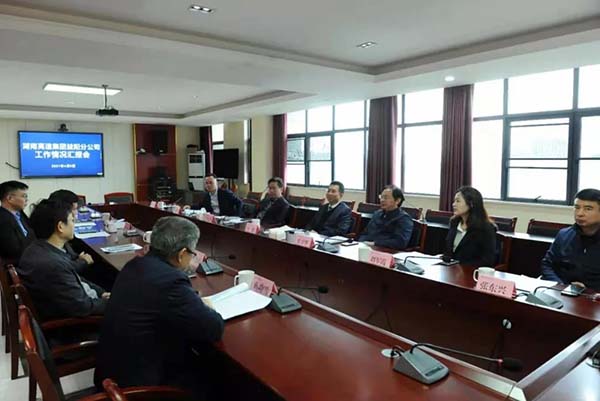 马捷一行来到益阳分公司驻地,先后察看监控分中心监控大厅、党建文化走廊、职工宿舍食堂等,看望慰问高速公路员工,随后在益阳分公司主持召开专题会议。会议现场。